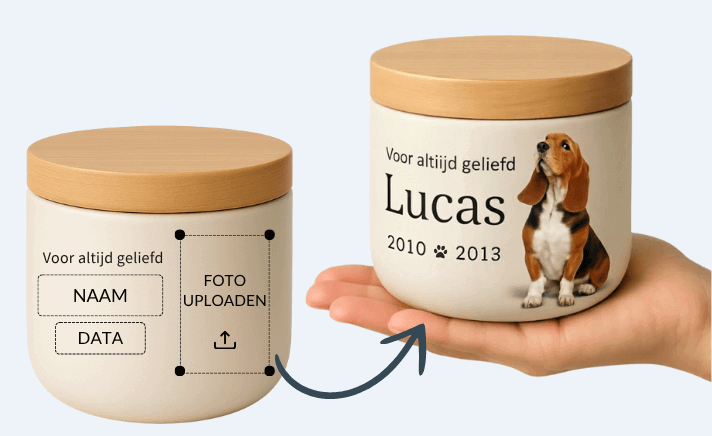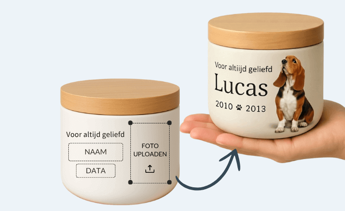 Maak het uniek – zonder extra kosten Breng een persoonlijk eerbetoon aan je geliefde viervoeter door een boodschap, naam of datum toe te voegen, zonder extra kosten.