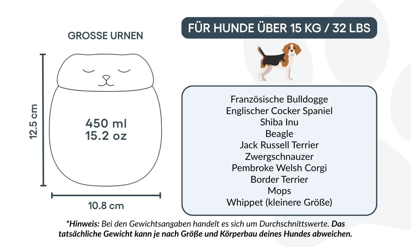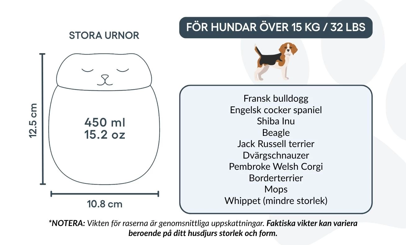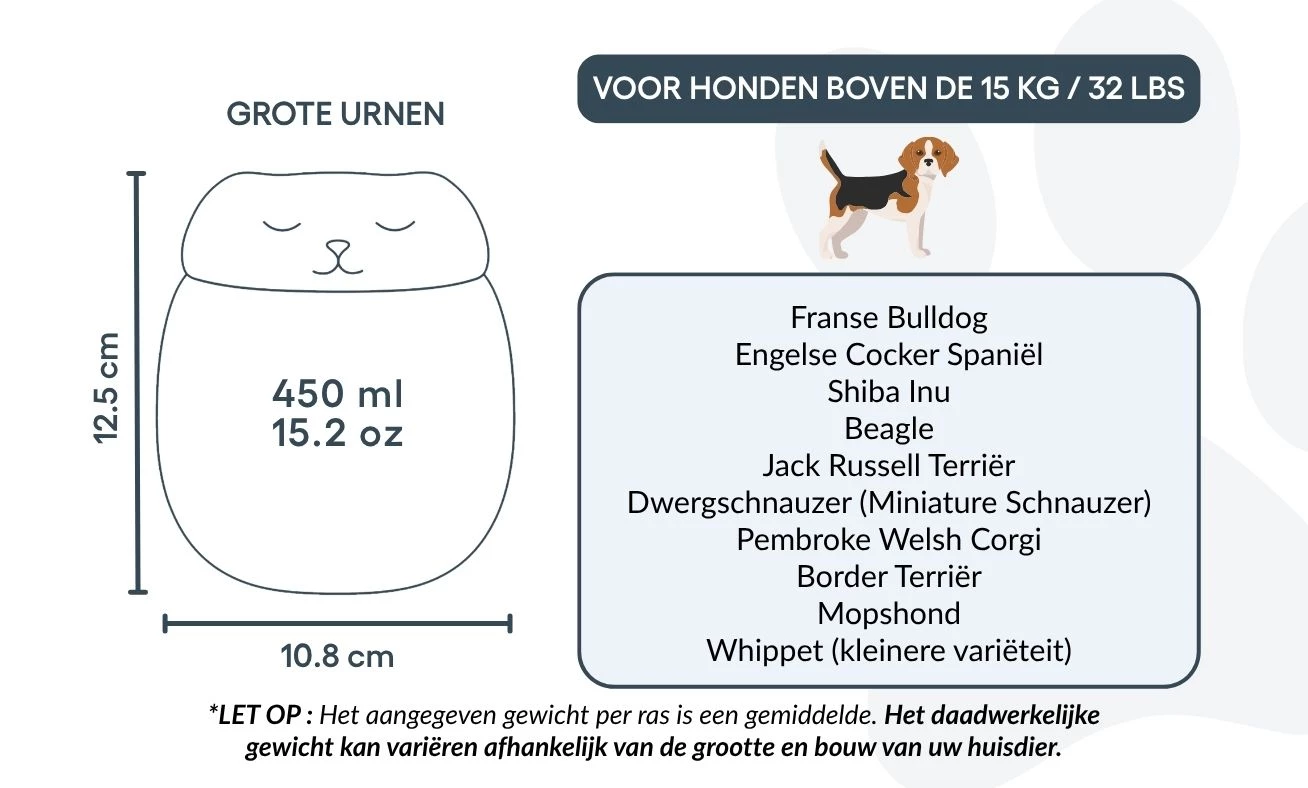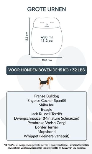 Of je de urn nu op een plank of op een speciale herdenkingsplek plaatst, deze keramische hondenurn is meer dan alleen een bewaarplaats voor as – het is een persoonlijke viering van het leven en de herinnering van je hond. Geschikt als urn voor huisdieras, biedt het een blijvende manier om hun aanwezigheid te koesteren.
