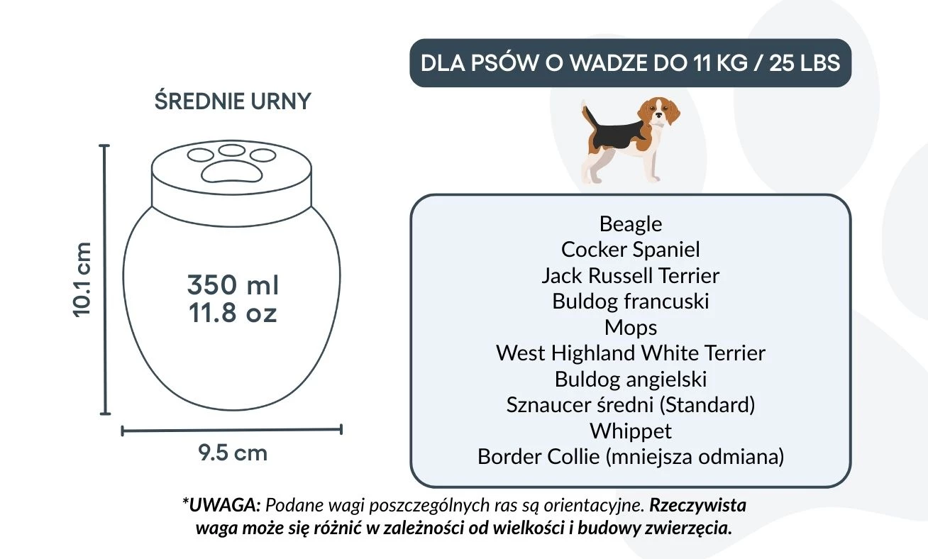 Verkrijgbaar in meerdere maten, geschikt voor honden van elk ras, is deze foto-urn ideaal voor crematie-as en als blijvend eerbetoon aan je geliefde hond.