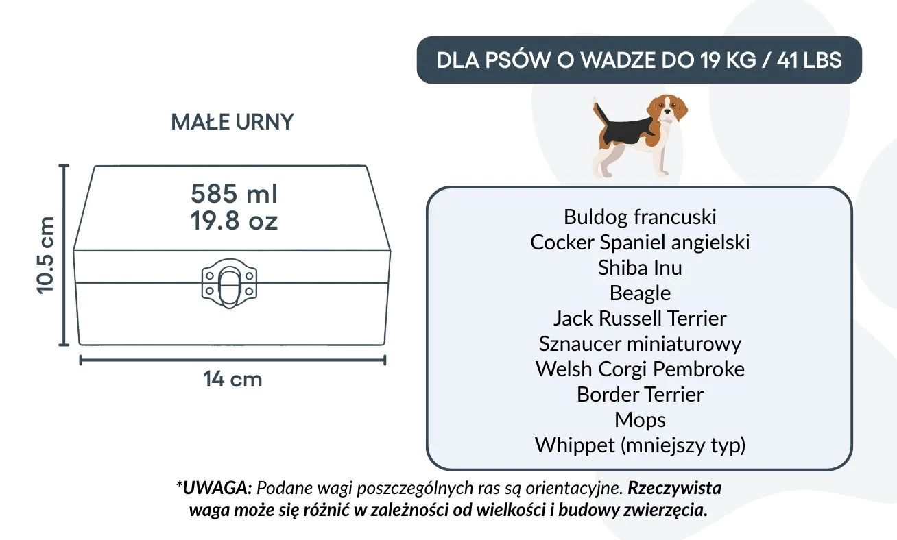 Let op: de inhoudsindicatie is gebaseerd op gemiddelde crematievolumes. Houd rekening met het gewicht en de bouw van je huisdier bij het kiezen van de juiste urn.