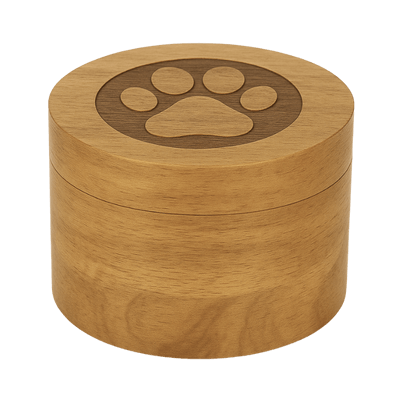 Met zijn gladde, natuurlijke afwerking en warme bruine houtkleur combineert deze urn eenvoud met elegantie. De voorkant kan worden gegraveerd met de naam en levensjaren van je hond, waardoor het een persoonlijk gedenkteken wordt dat de onvoorwaardelijke liefde tussen jullie weerspiegelt.