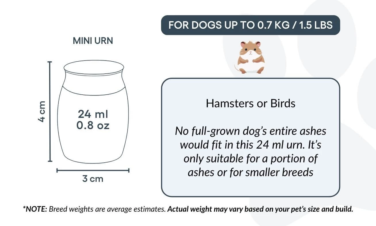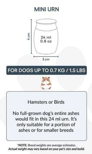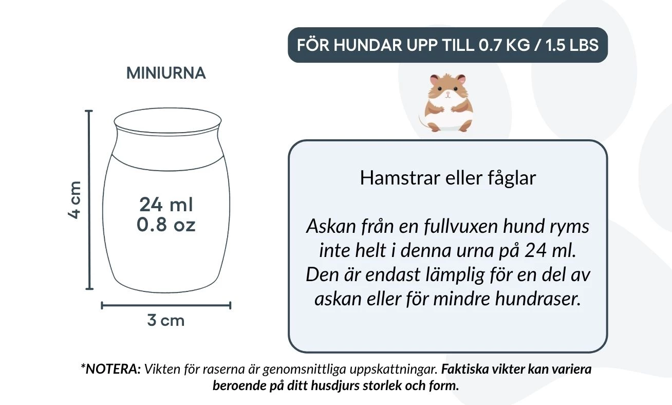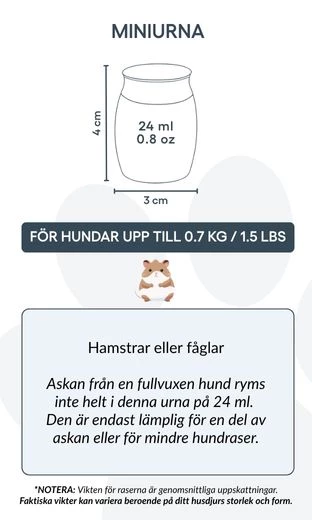Voor wie slechts een deel van de as van hun geliefde hond wil bewaren – om te delen met familie, als meerdere aandenken of als aanvulling op andere herdenkingsstukken – is deze urn een betekenisvolle keuze. Zo blijft een stukje van je hond altijd bij je, op een manier die goed voelt.