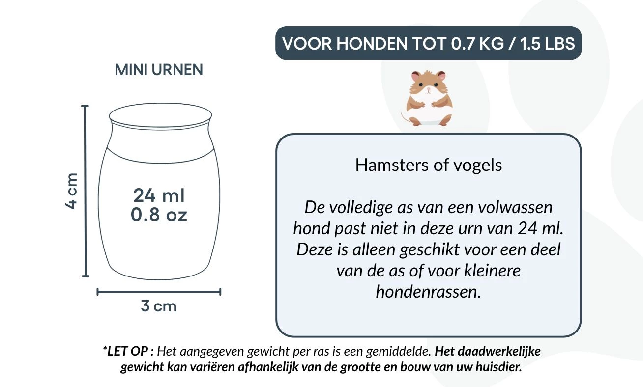 🤍 Ideaal voor hamsters, kleine vogels of als gedeeltelijke urn voor grotere honden