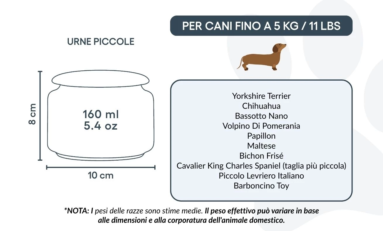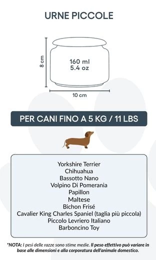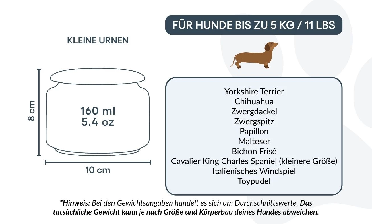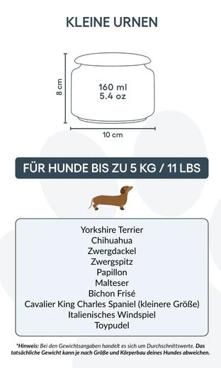 Personaliseer deze crematie-urn met de naam, levensdata en een persoonlijke boodschap voor je hond, om een uniek eerbetoon te creëren dat hun herinnering levend houdt. Geschikt voor kleine honden tot 5 kg, biedt deze urn een betekenisvolle manier om je trouwe metgezel te eren. Dankzij de rustige uitstraling en de elegante lijntekening brengt de urn een gevoel van sereniteit en troost. Voor grotere honden kan deze urn ook gebruikt worden om een deel van de as te bewaren – bijvoorbeeld om te delen met familie of meerdere herdenkingsstukken te maken – zodat je altijd een stukje van hen dichtbij houdt.